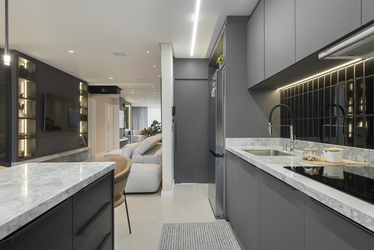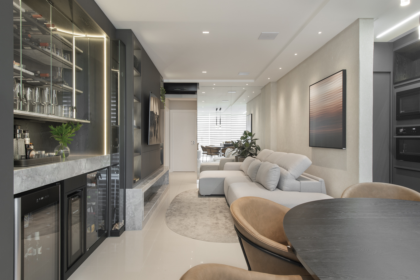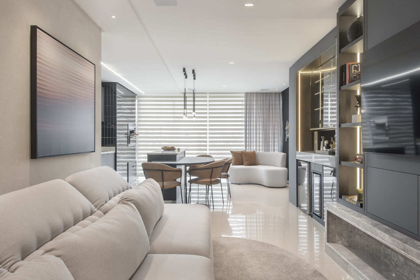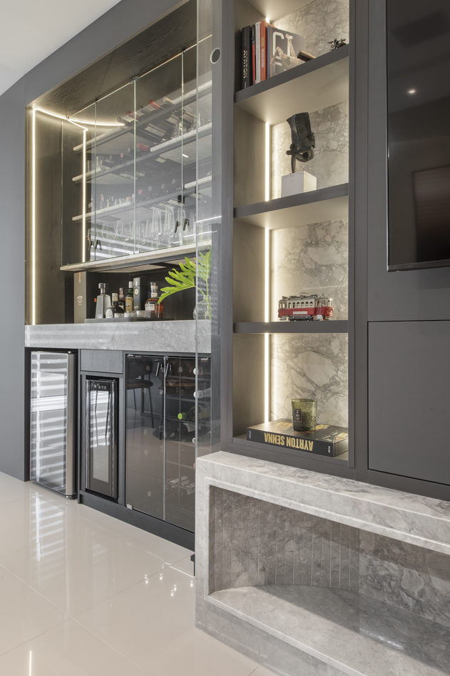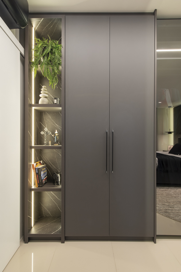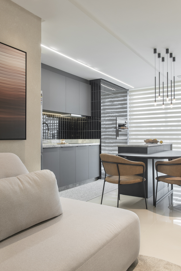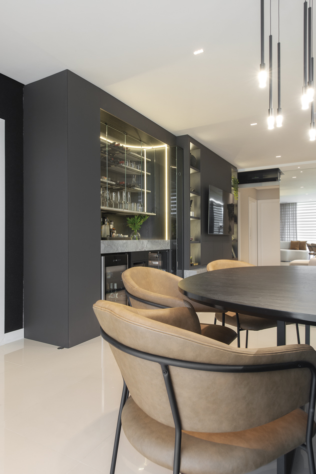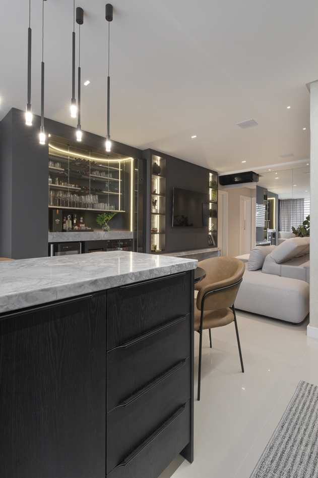 Projeto de marcenaria sob medida concebido para estabelecer continuidade visual entre os ambientes, com atenção especial à modulação, alinhamento dos painéis e proporção dos volumes. A solução privilegia acabamentos clean, ergonomia funcional e fluidez espacial.