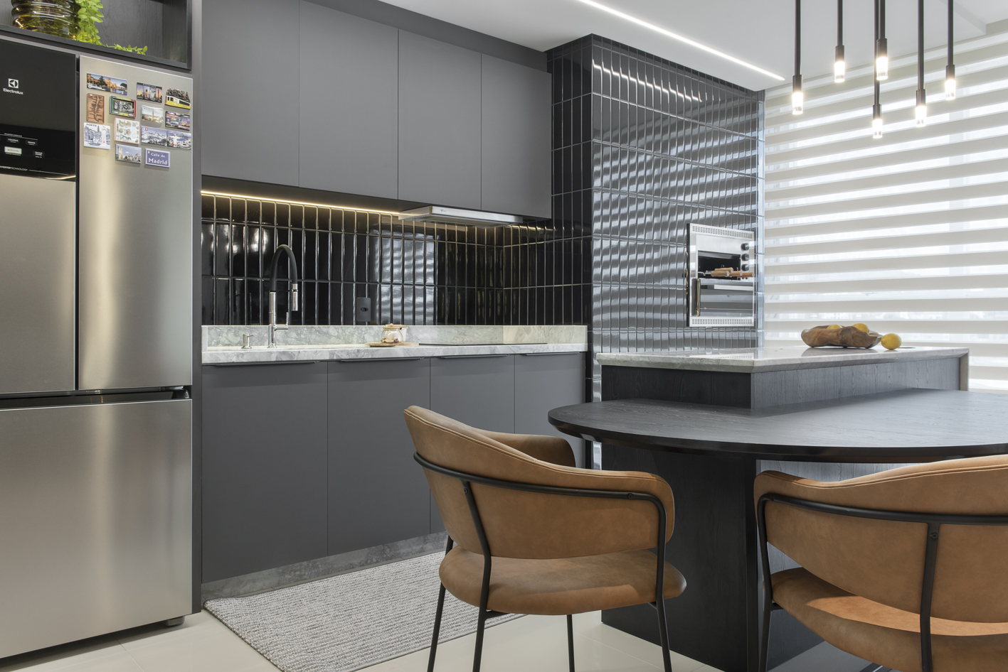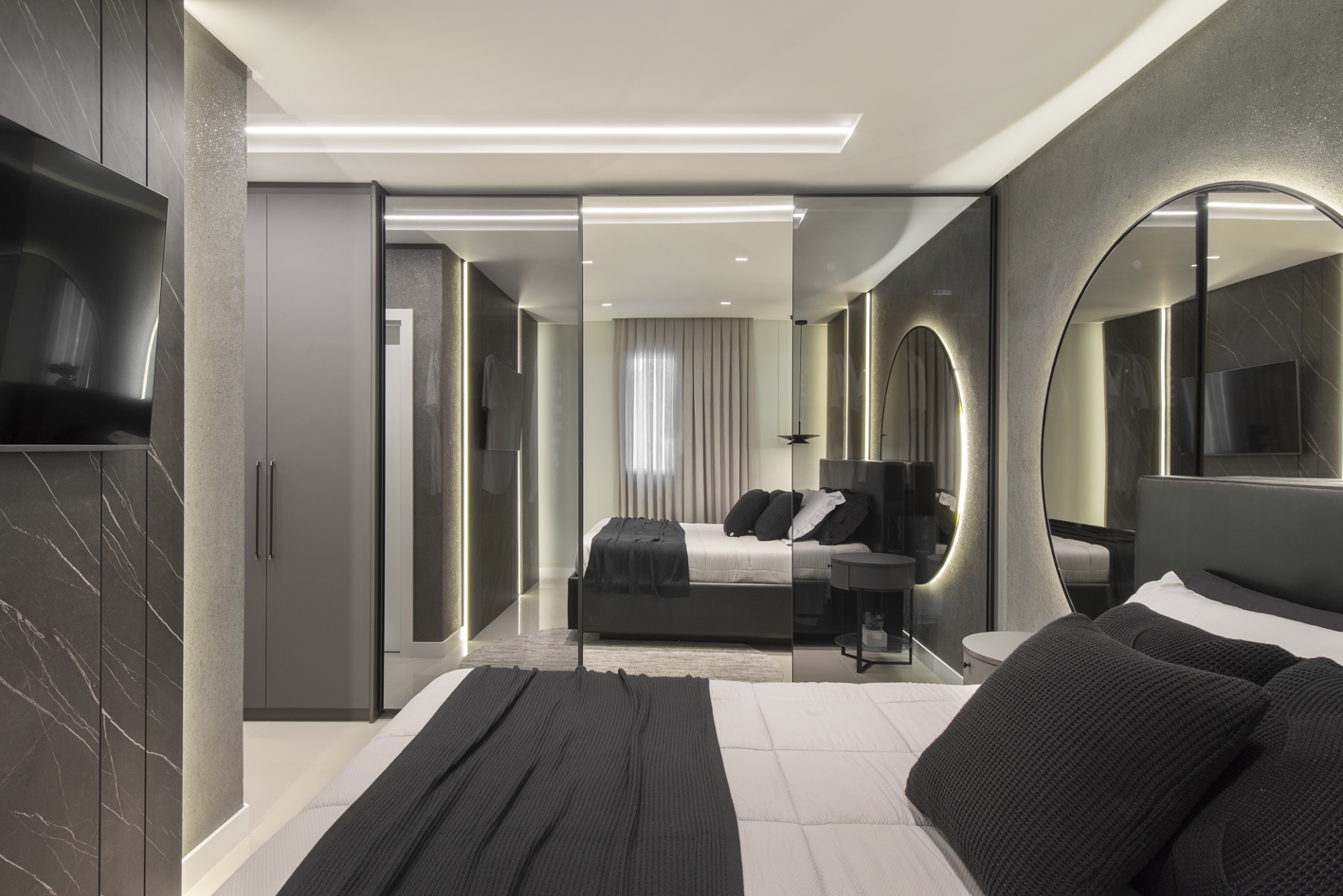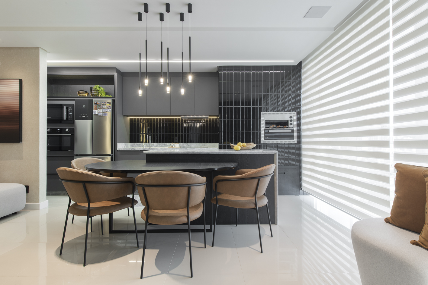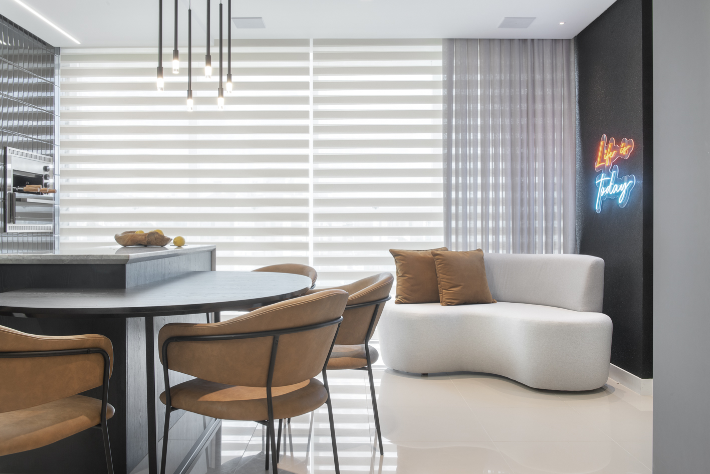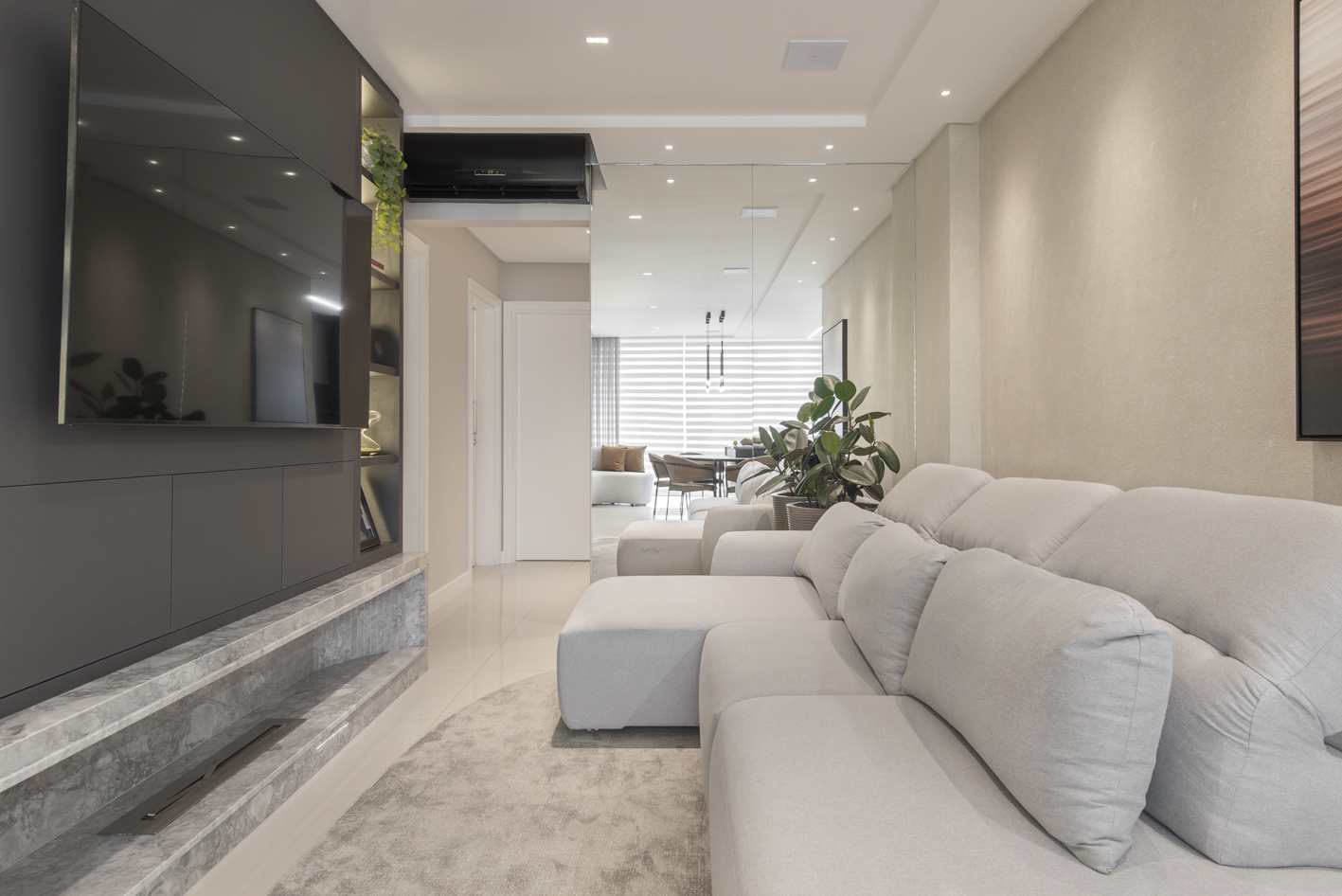 Projeto de marcenaria sob medida concebido para estabelecer continuidade visual entre os ambientes, com atenção especial à modulação, alinhamento dos painéis e proporção dos volumes. A solução privilegia acabamentos clean, ergonomia funcional e fluidez espacial.