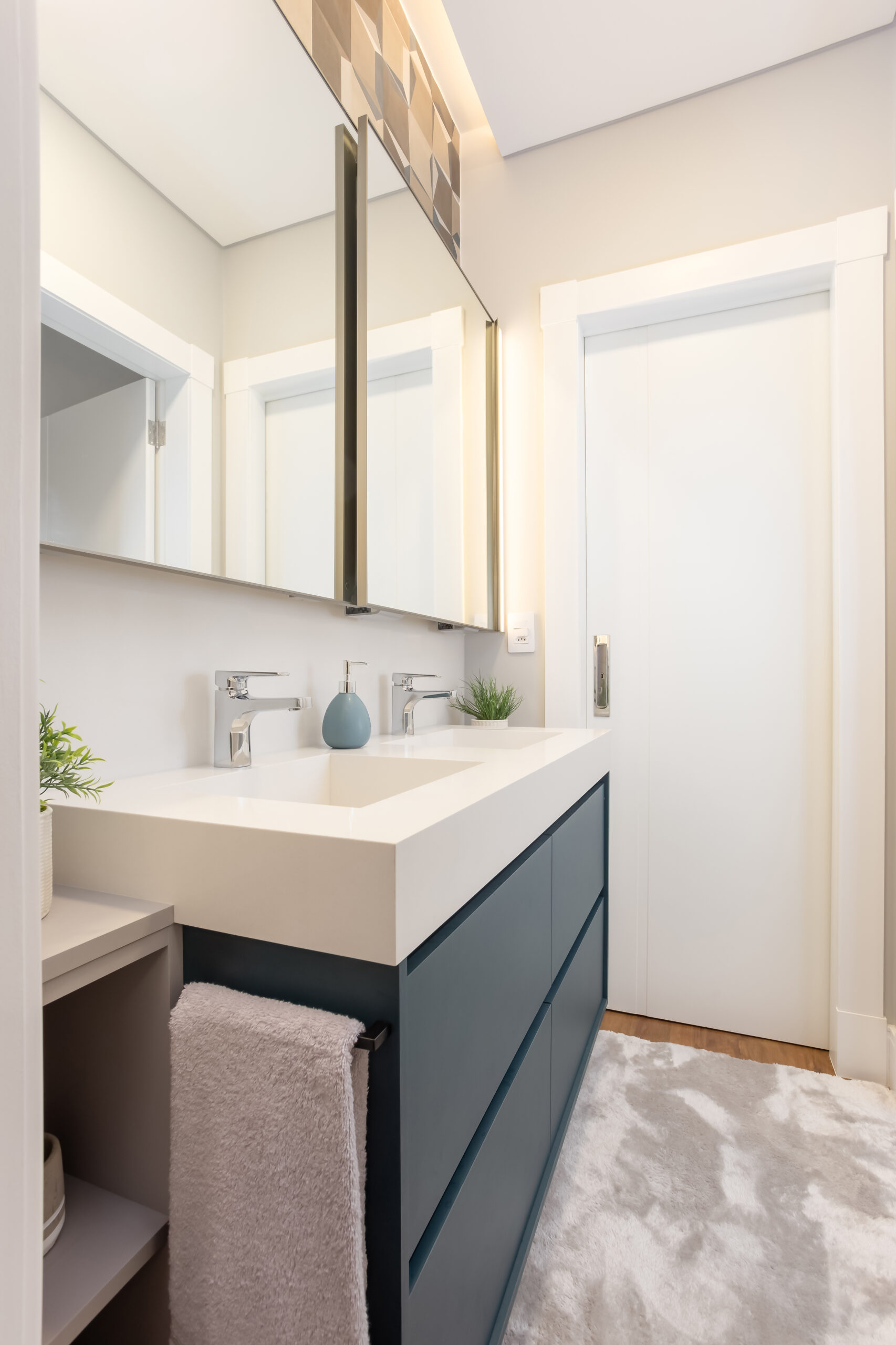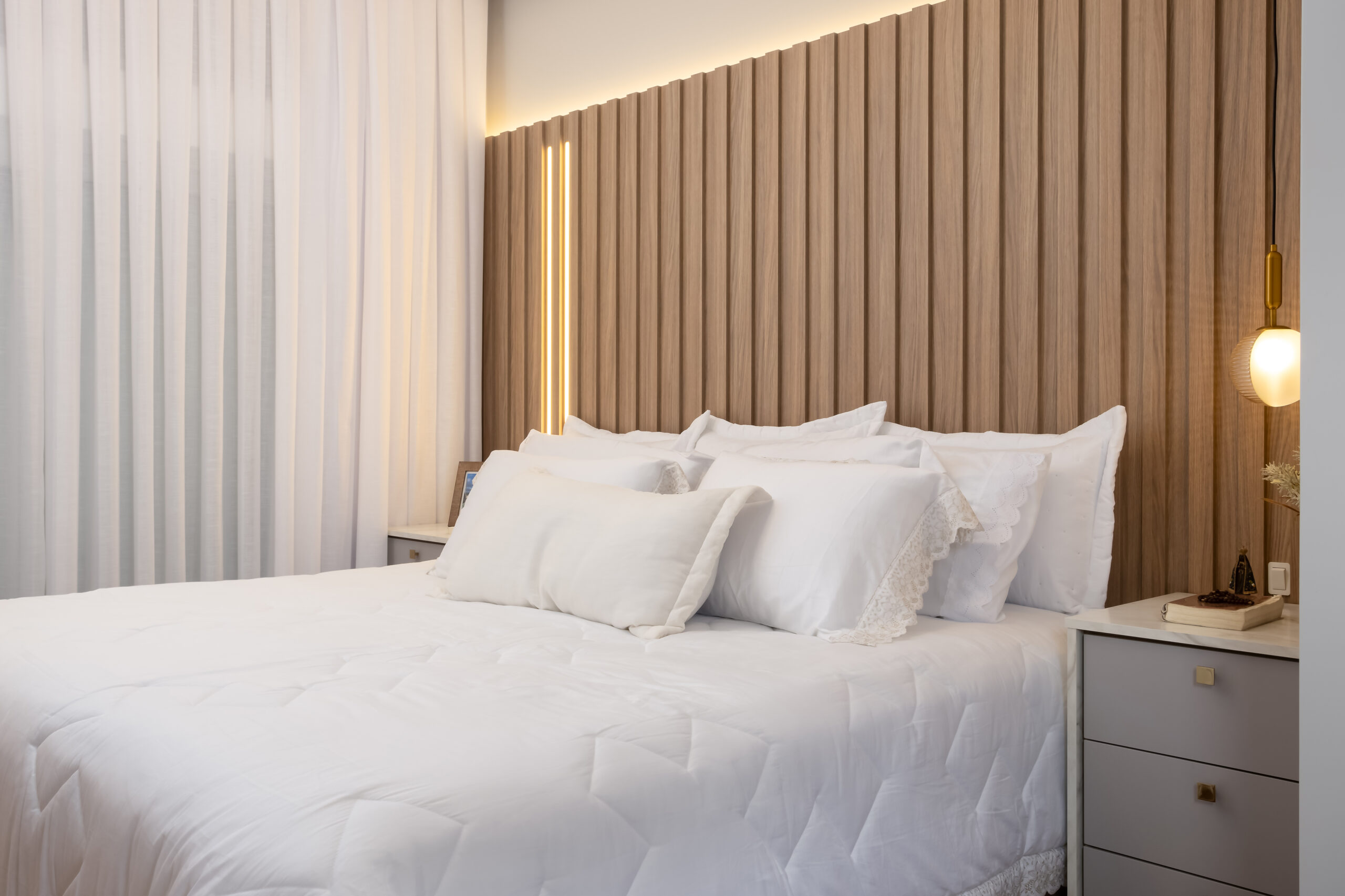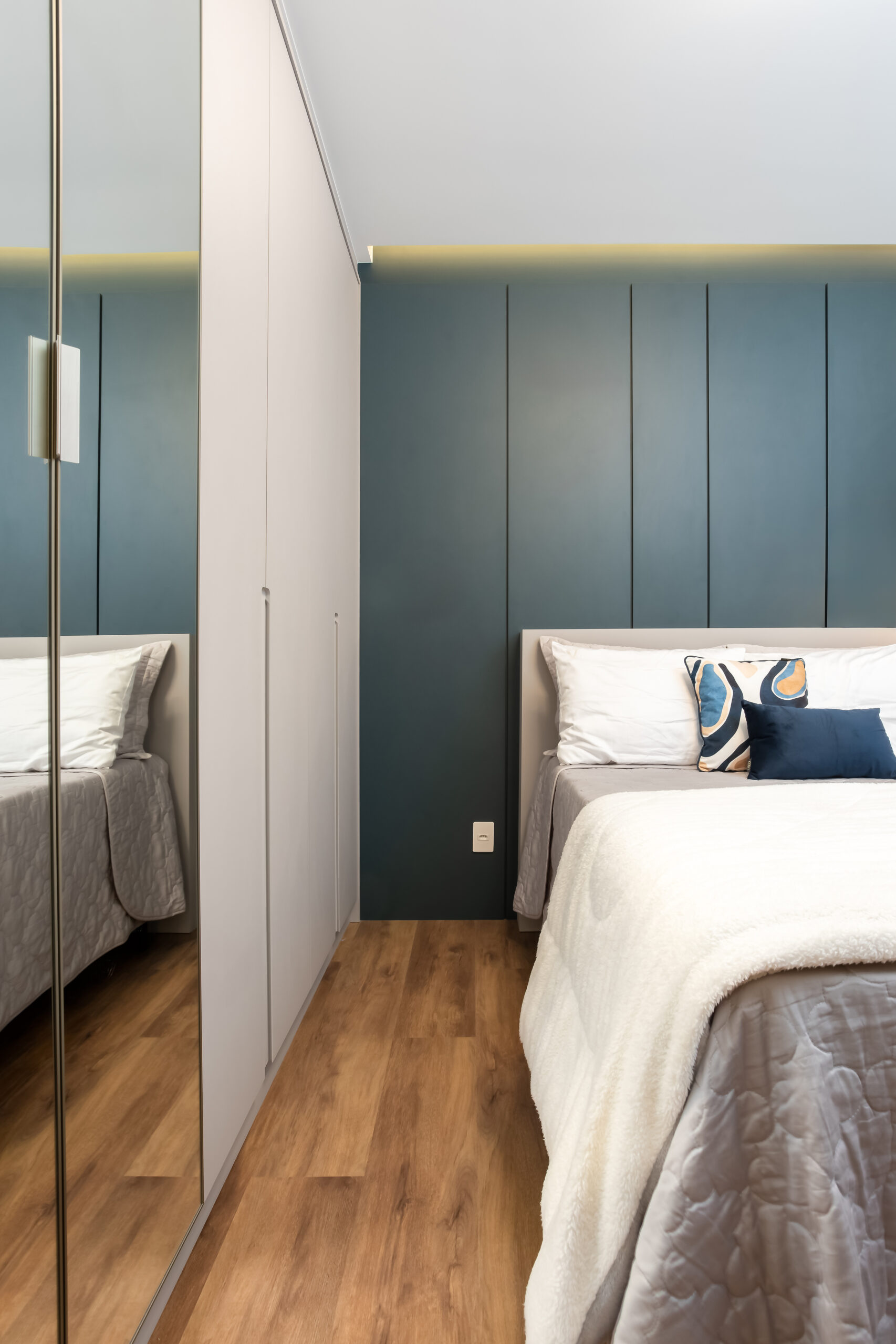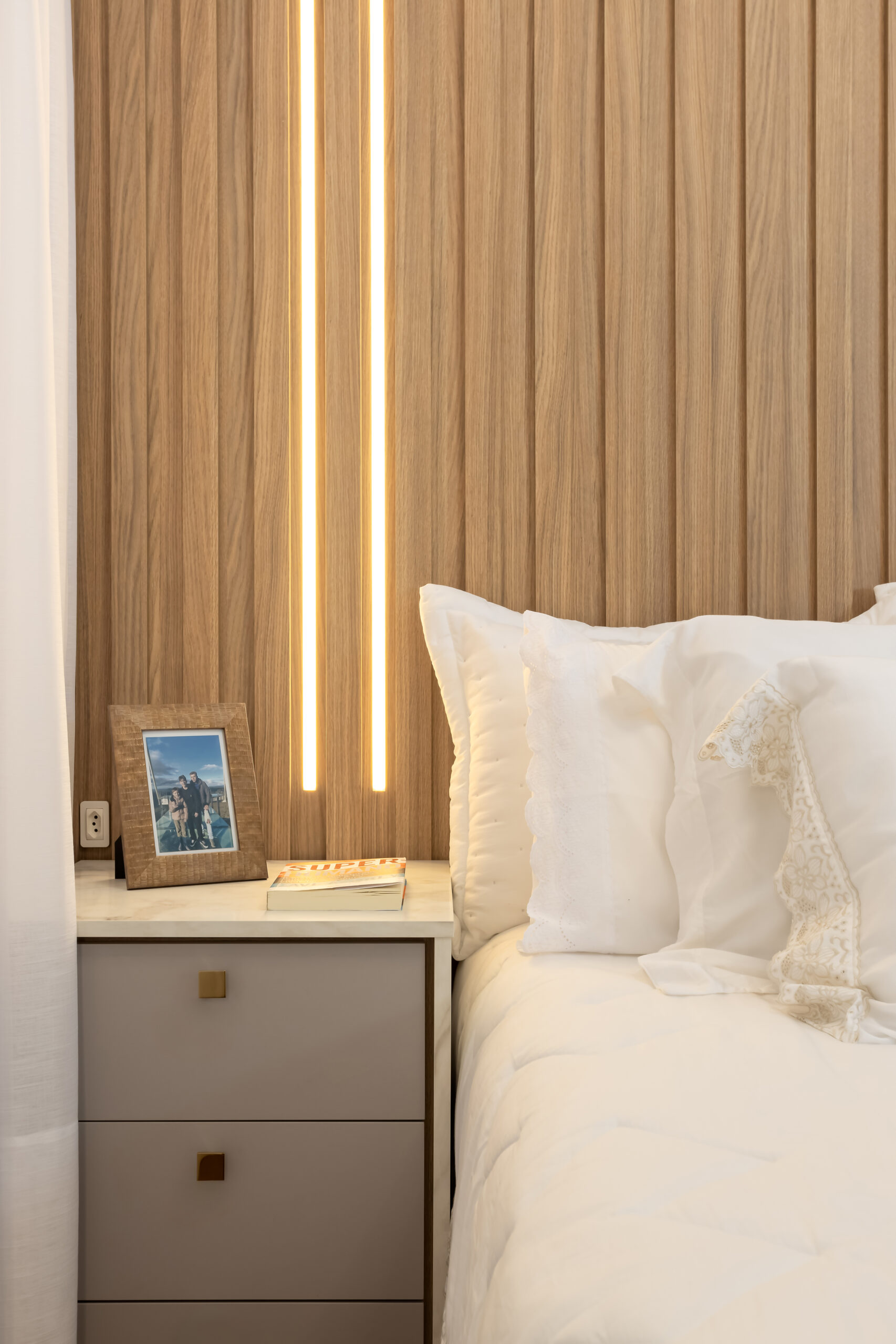 Neste projeto, a marcenaria foi concebida para dialogar com o ritmo volumétrico e a materialidade do espaço arquitetônico, oferecendo módulos planejados que se integraram aos eixos estruturais existentes. A partir de uma leitura criteriosa do entorno e da circulação, a intervenção sob medida visou garantir continuidade visual entre ambientes, aliando proporção, alinhamento e ergonomia.